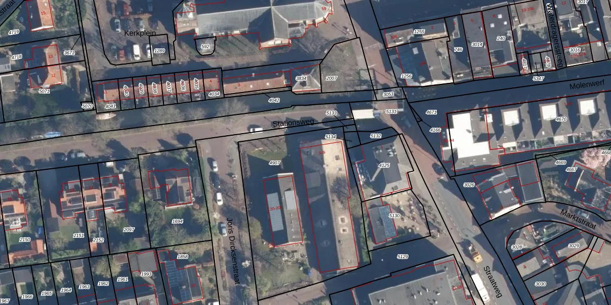 Het perceel waarop Stationsweg 3-a staat heeft een oppervlakte van 1826 m². Dit is een zeer groot perceel. De perceeloppervlakte wordt geregistreerd door het Kadaster. Gedetailleerde informatie over de maten van dit perceel kunt u vinden in het rapport Kadastrale kaart met maatvoering van Stationsweg 3-a.