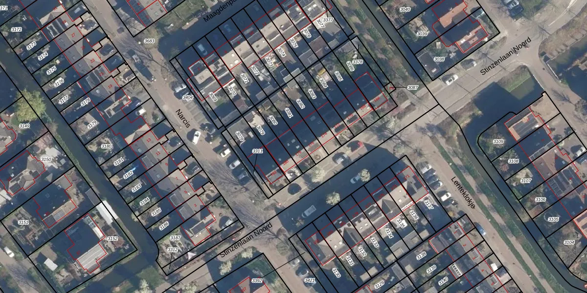 Gebruik de zoekbalk of klik op een perceel voor informatie over de adressen binnen dit perceel.