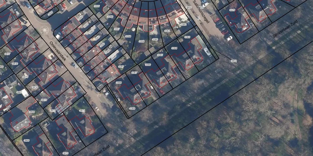Gebruik de zoekbalk of klik op een perceel voor informatie over de adressen binnen dit perceel.