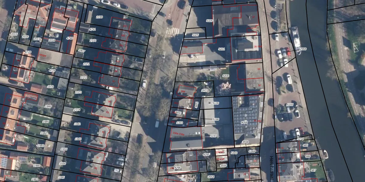 Gebruik de zoekbalk of klik op een perceel voor informatie over de adressen binnen dit perceel.