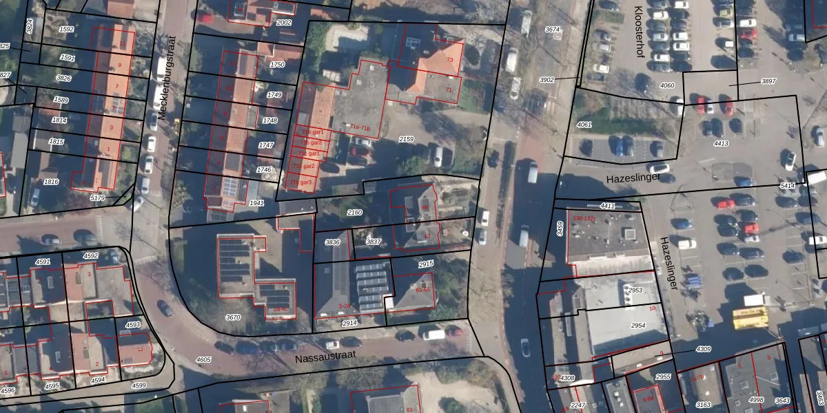 Gebruik de zoekbalk of klik op een perceel voor informatie over de adressen binnen dit perceel.