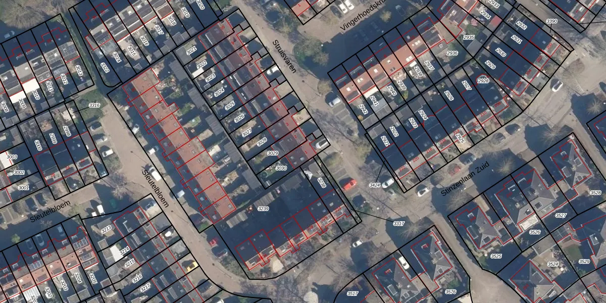 Het perceel waarop Struisvaren 1 staat heeft een oppervlakte van 145 m². Dit is een middelgroot perceel. De perceeloppervlakte wordt geregistreerd door het Kadaster. Gedetailleerde informatie over de maten van dit perceel kunt u vinden in het rapport Kadastrale kaart met maatvoering van Struisvaren 1.