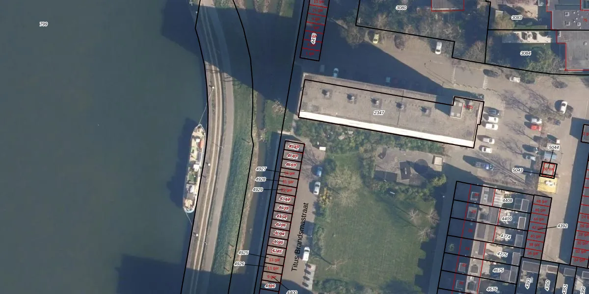 Het perceel waarop Titus Brandsmastraat 39-gar staat heeft een oppervlakte van 20 m². Dit is een klein perceel. De perceeloppervlakte wordt geregistreerd door het Kadaster. Gedetailleerde informatie over de maten van dit perceel kunt u vinden in het rapport Kadastrale kaart met maatvoering van Titus Brandsmastraat 39-gar.