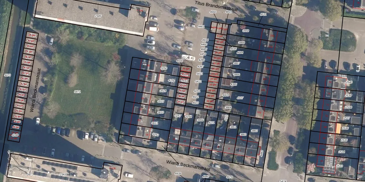 Gebruik de zoekbalk of klik op een perceel voor informatie over de adressen binnen dit perceel.