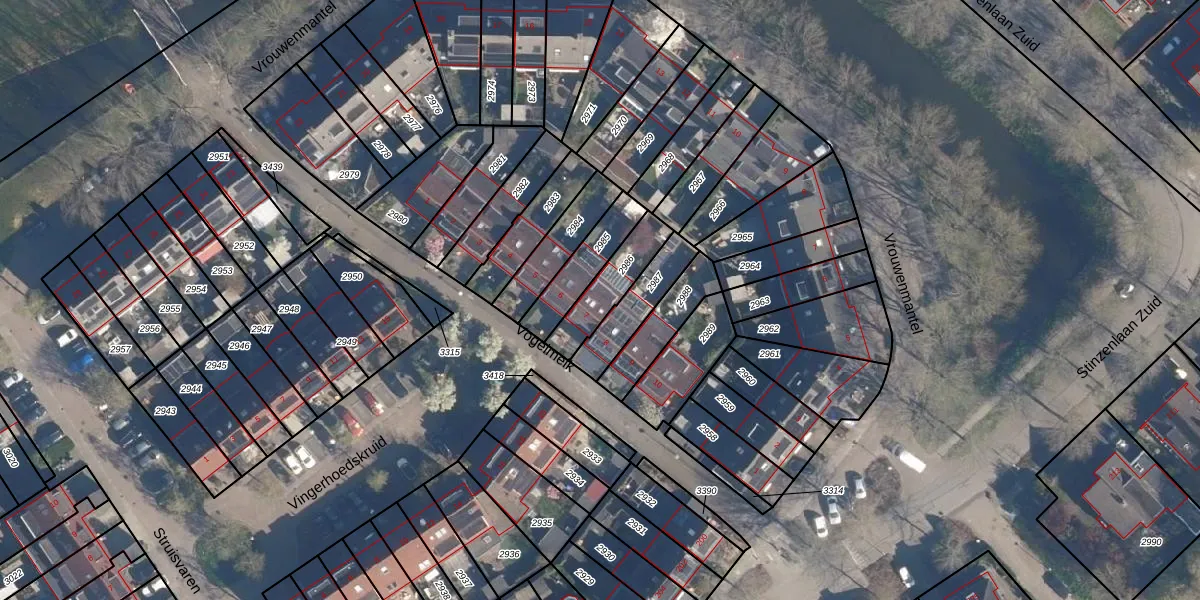 Gebruik de zoekbalk of klik op een perceel voor informatie over de adressen binnen dit perceel.