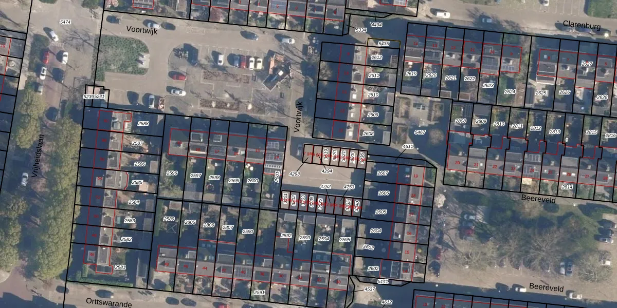 Gebruik de zoekbalk of klik op een perceel voor informatie over de adressen binnen dit perceel.