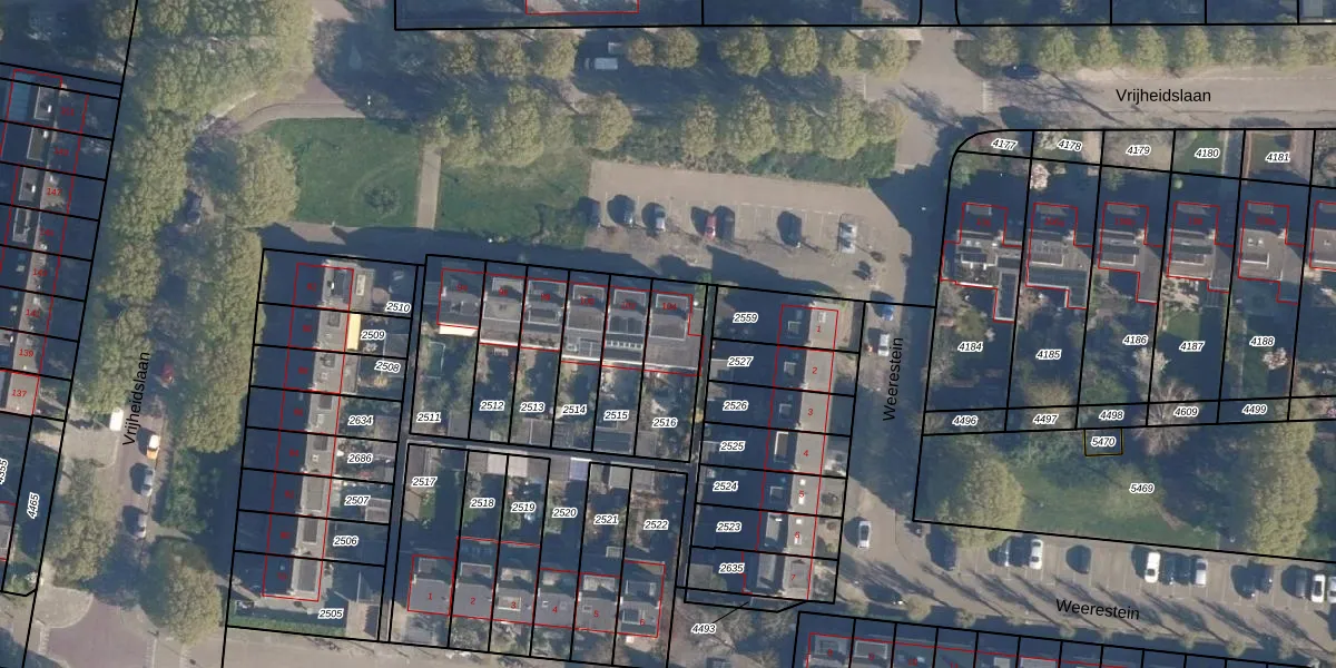 Vrijheidslaan 104 is gelegen op kadastraal perceel BKL07B2516. Deze kadastrale aanduiding is uniek en wordt gebruikt door het Kadaster om eigendomsrechten en andere zakelijke rechten vast te leggen. Het perceel maakt onderdeel uit van de kadastrale gemeente Breukelen-Nijenrode.