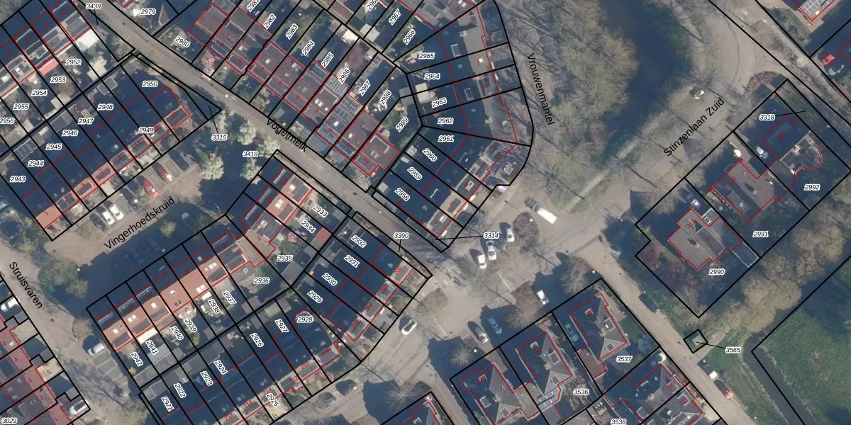 Gebruik de zoekbalk of klik op een perceel voor informatie over de adressen binnen dit perceel.