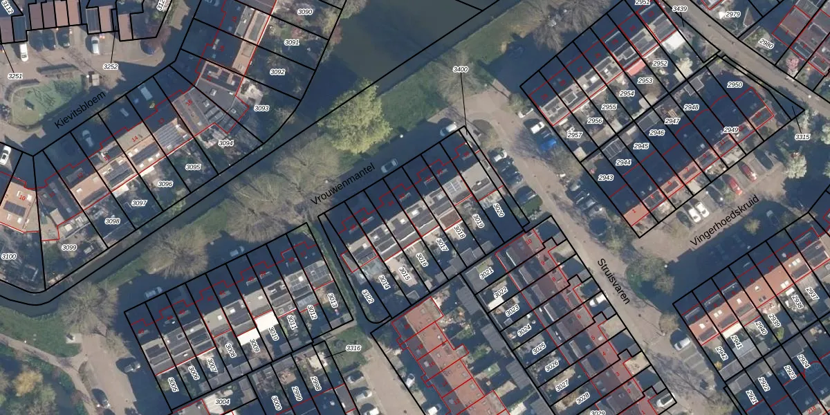 Gebruik de zoekbalk of klik op een perceel voor informatie over de adressen binnen dit perceel.