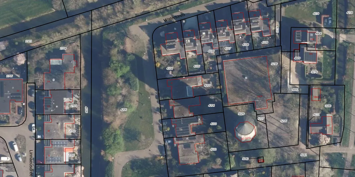 Het perceel waarop Watertoren 4 staat heeft een oppervlakte van 425 m². Dit is een groot perceel. De perceeloppervlakte wordt geregistreerd door het Kadaster. Gedetailleerde informatie over de maten van dit perceel kunt u vinden in het rapport Kadastrale kaart met maatvoering van Watertoren 4.