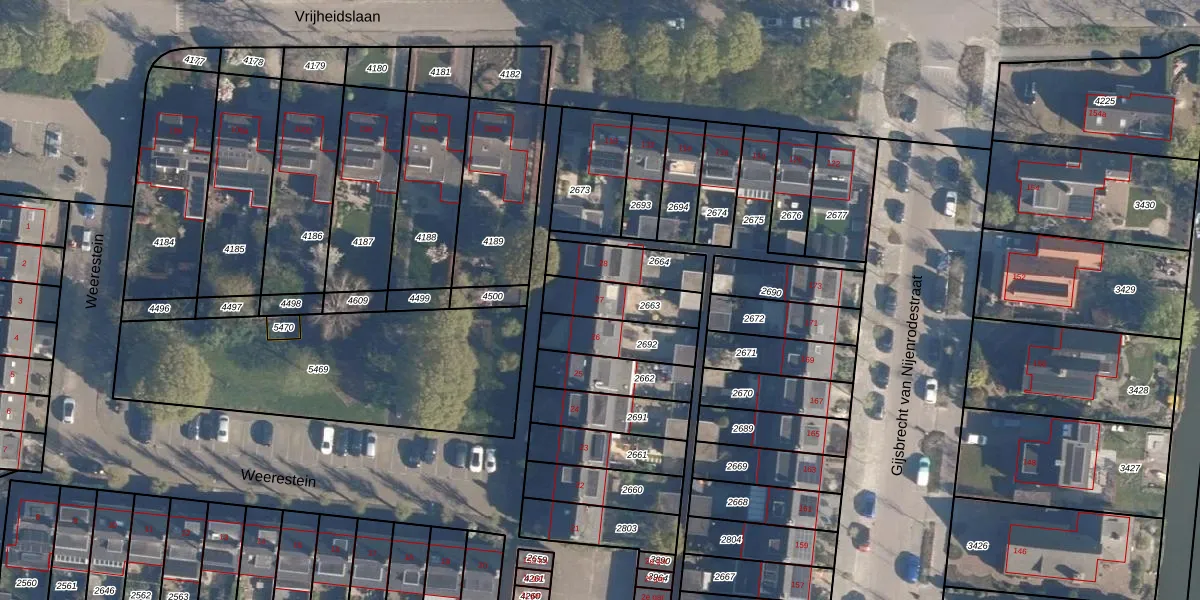 Gebruik de zoekbalk of klik op een perceel voor informatie over de adressen binnen dit perceel.