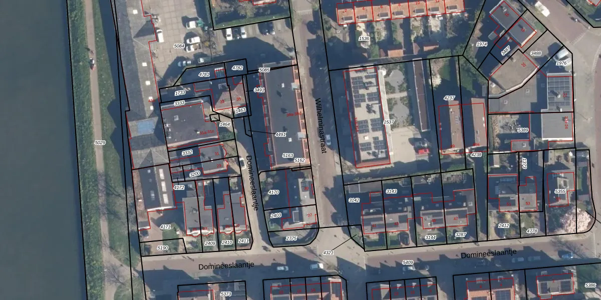 Het perceel waarop Wilhelminastraat 39-d staat heeft een oppervlakte van 594 m². Dit is een groot perceel. De perceeloppervlakte wordt geregistreerd door het Kadaster. Gedetailleerde informatie over de maten van dit perceel kunt u vinden in het rapport Kadastrale kaart met maatvoering van Wilhelminastraat 39-d.