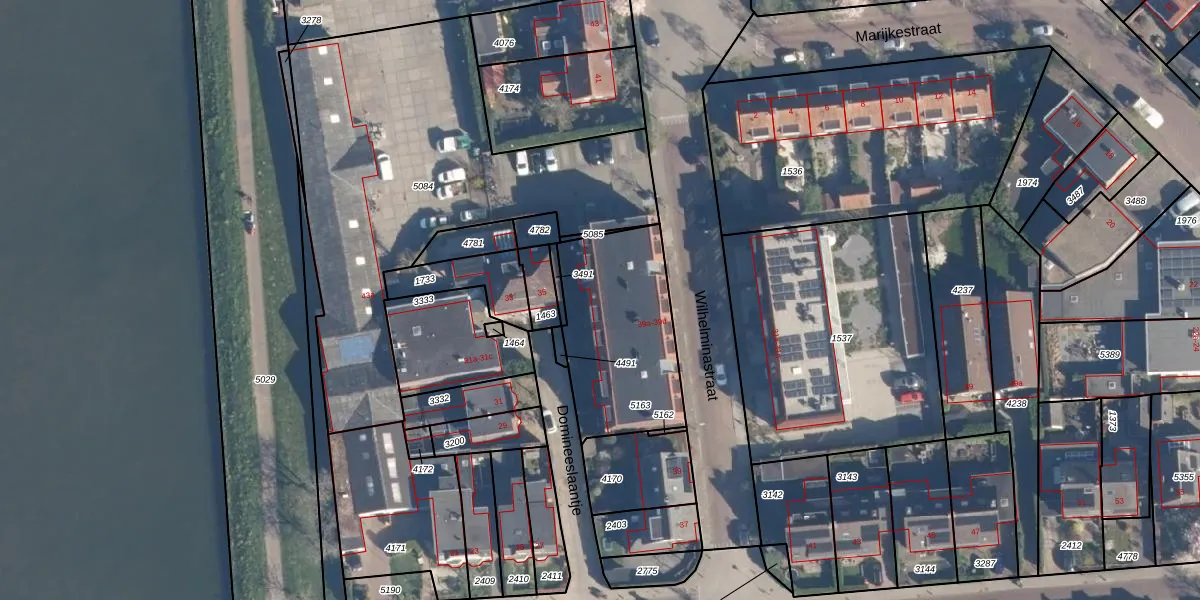 Het perceel waarop Wilhelminastraat 39-r staat heeft een oppervlakte van 594 m². Dit is een groot perceel. De perceeloppervlakte wordt geregistreerd door het Kadaster. Gedetailleerde informatie over de maten van dit perceel kunt u vinden in het rapport Kadastrale kaart met maatvoering van Wilhelminastraat 39-r.