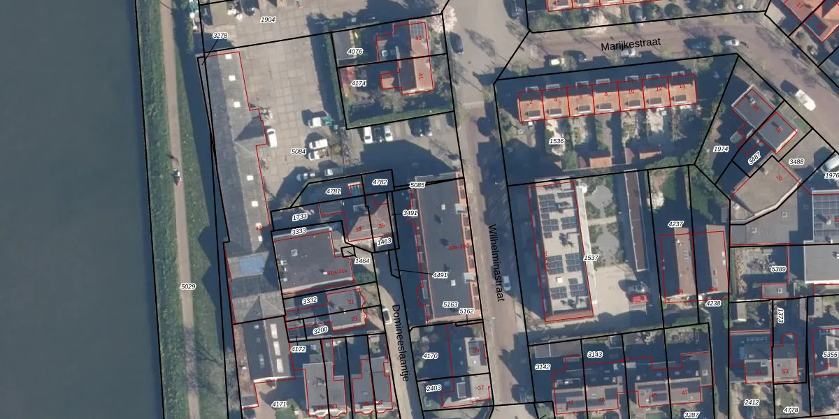 Het perceel waarop Wilhelminastraat 39-u staat heeft een oppervlakte van 594 m². Dit is een groot perceel. De perceeloppervlakte wordt geregistreerd door het Kadaster. Gedetailleerde informatie over de maten van dit perceel kunt u vinden in het rapport Kadastrale kaart met maatvoering van Wilhelminastraat 39-u.