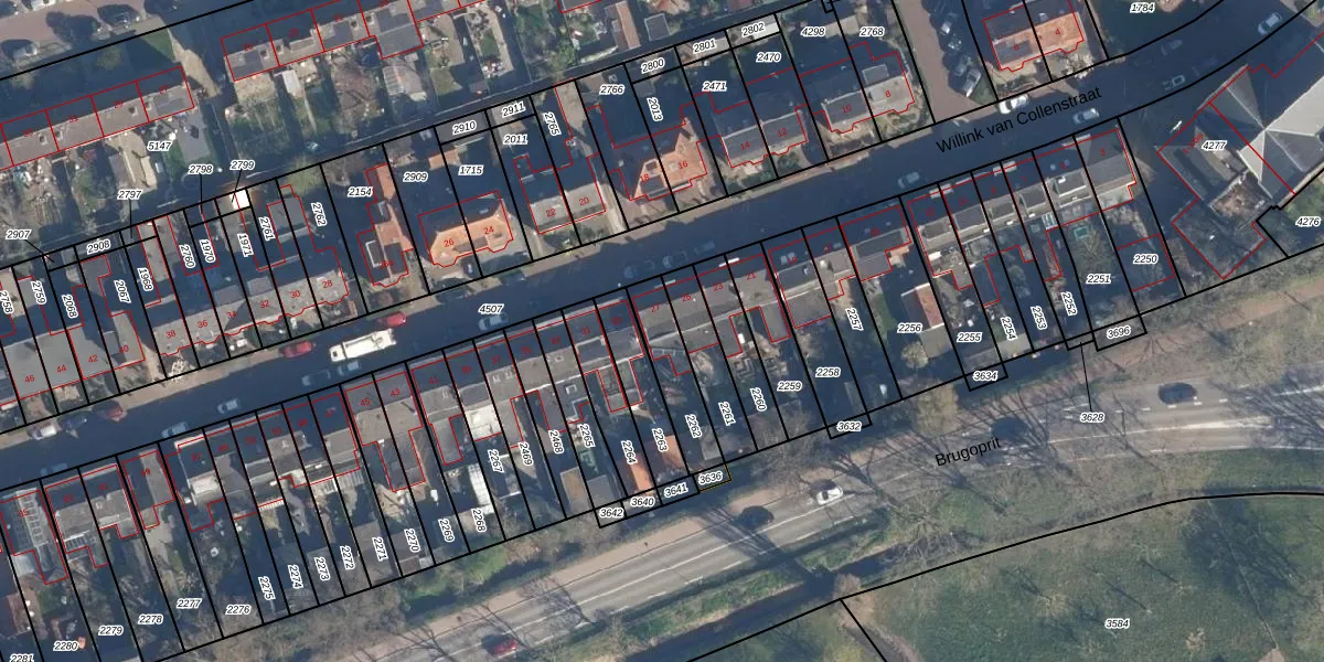 Gebruik de zoekbalk of klik op een perceel voor informatie over de adressen binnen dit perceel.