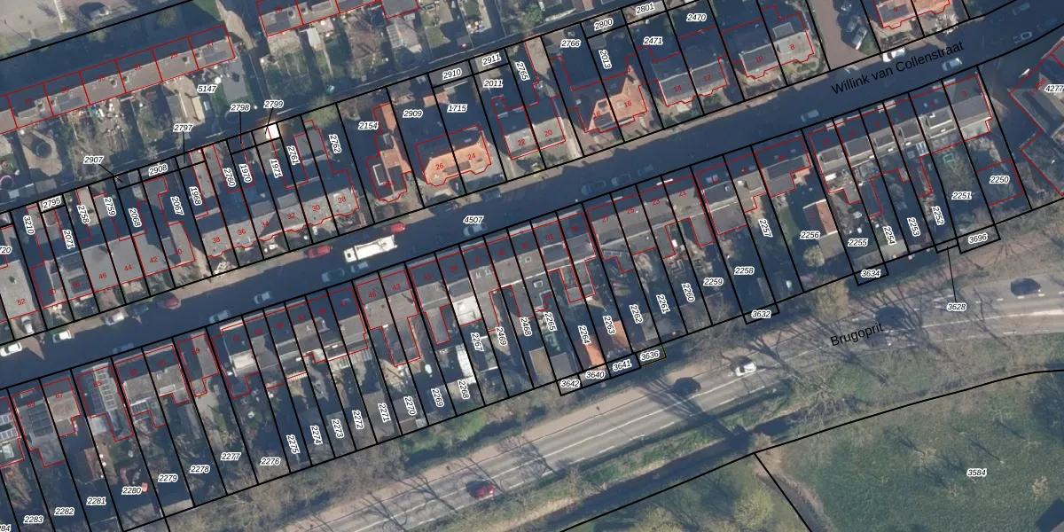 Gebruik de zoekbalk of klik op een perceel voor informatie over de adressen binnen dit perceel.