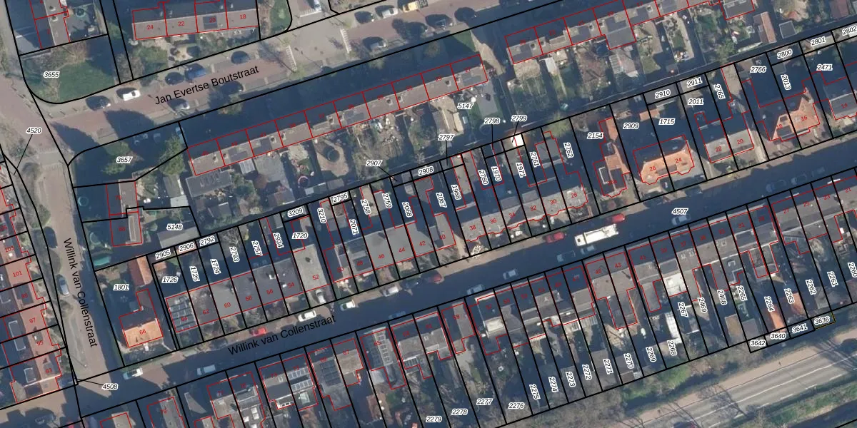 Gebruik de zoekbalk of klik op een perceel voor informatie over de adressen binnen dit perceel.
