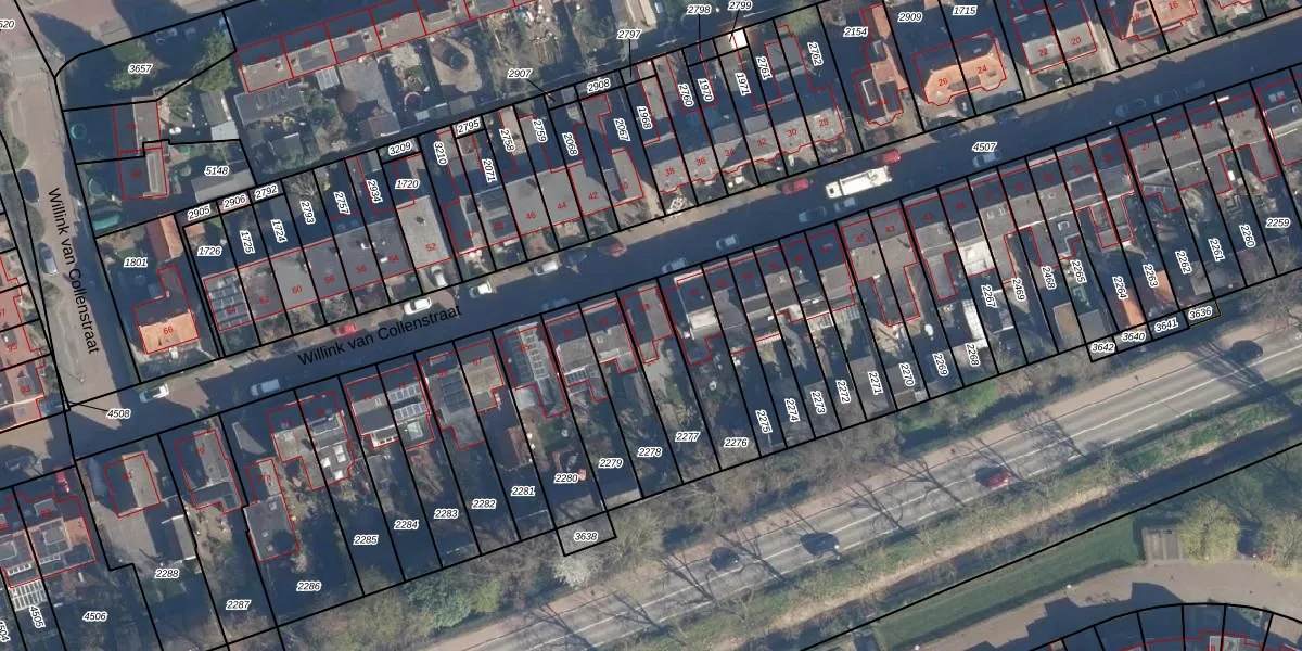 Het perceel waarop Willink van Collenstraat 59 staat heeft een oppervlakte van 205 m². Dit is een middelgroot perceel. De perceeloppervlakte wordt geregistreerd door het Kadaster. Gedetailleerde informatie over de maten van dit perceel kunt u vinden in het rapport Kadastrale kaart met maatvoering van Willink van Collenstraat 59.