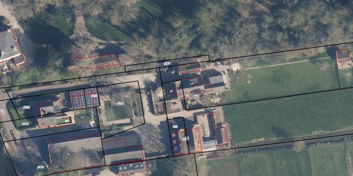 Het perceel waarop Zandpad 44-a staat heeft een oppervlakte van 5885 m². Dit is een zeer groot perceel. De perceeloppervlakte wordt geregistreerd door het Kadaster. Gedetailleerde informatie over de maten van dit perceel kunt u vinden in het rapport Kadastrale kaart met maatvoering van Zandpad 44-a.