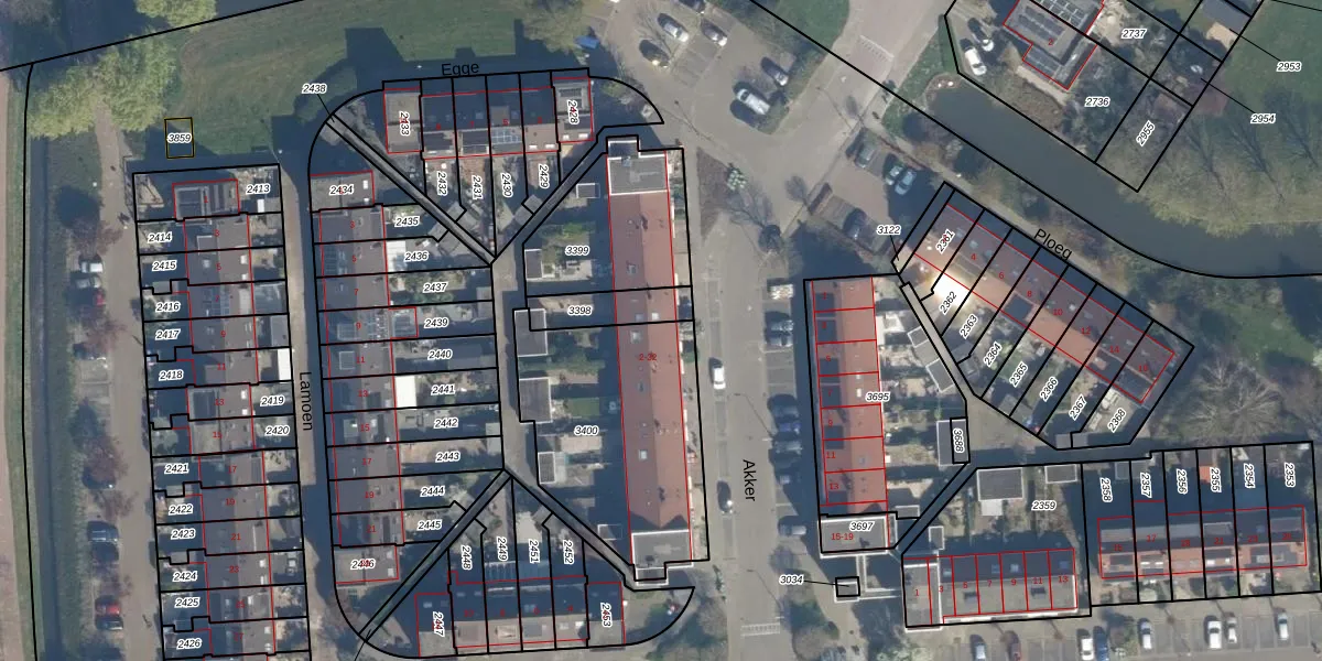 Het perceel waarop Akker 30 staat heeft een oppervlakte van 875 m². Dit is een groot perceel. De perceeloppervlakte wordt geregistreerd door het Kadaster. Gedetailleerde informatie over de maten van dit perceel kunt u vinden in het rapport Kadastrale kaart met maatvoering van Akker 30.