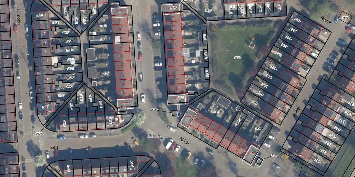 Het perceel waarop Akker 43 staat heeft een oppervlakte van 1041 m². Dit is een zeer groot perceel. De perceeloppervlakte wordt geregistreerd door het Kadaster. Gedetailleerde informatie over de maten van dit perceel kunt u vinden in het rapport Kadastrale kaart met maatvoering van Akker 43.