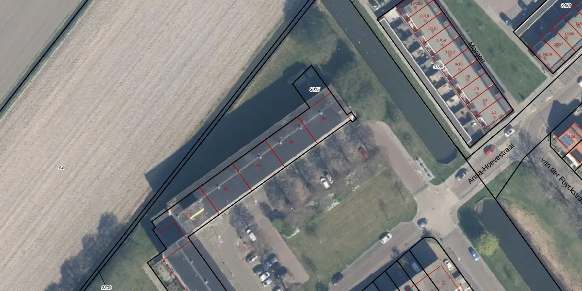 Anna-Hoevestraat 94 is gelegen op kadastraal perceel BLE02C3015. Deze kadastrale aanduiding is uniek en wordt gebruikt door het Kadaster om eigendomsrechten en andere zakelijke rechten vast te leggen. Het perceel maakt onderdeel uit van de kadastrale gemeente Brielle.