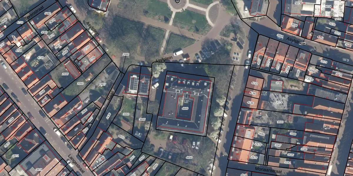 Het perceel waarop Asylplein 41 staat heeft een oppervlakte van 955 m². Dit is een groot perceel. De perceeloppervlakte wordt geregistreerd door het Kadaster. Gedetailleerde informatie over de maten van dit perceel kunt u vinden in het rapport Kadastrale kaart met maatvoering van Asylplein 41.