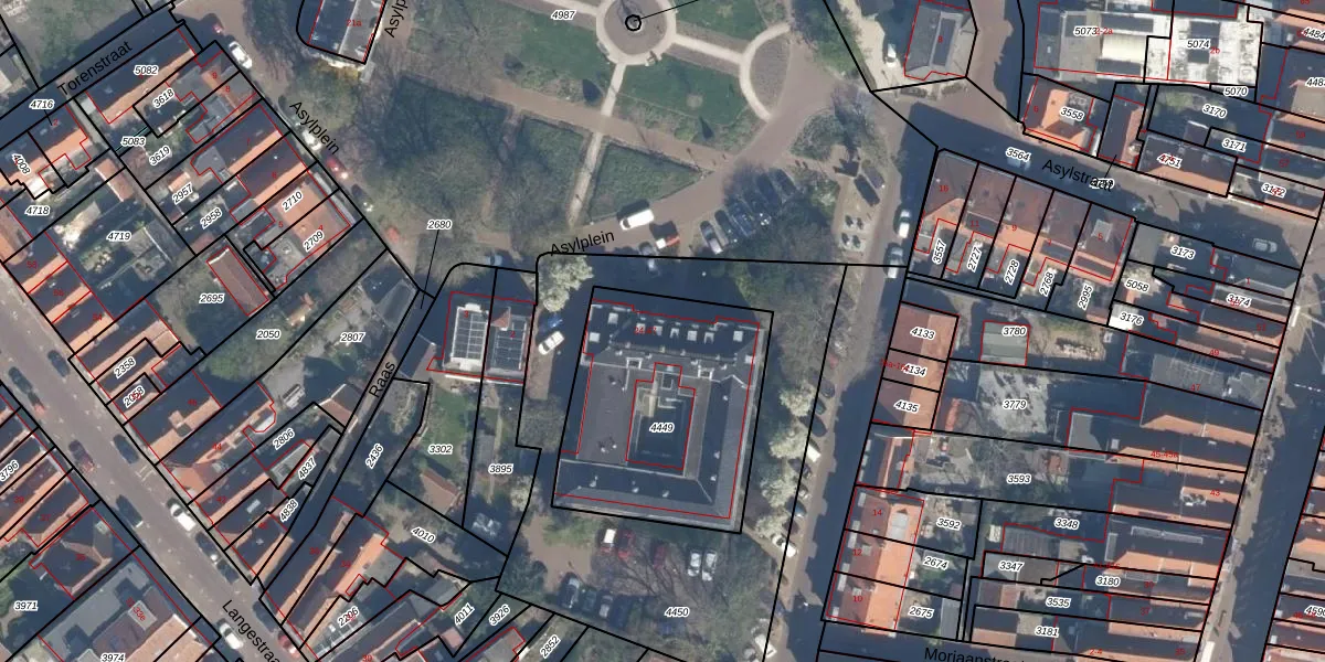 Het perceel waarop Asylplein 43 staat heeft een oppervlakte van 955 m². Dit is een groot perceel. De perceeloppervlakte wordt geregistreerd door het Kadaster. Gedetailleerde informatie over de maten van dit perceel kunt u vinden in het rapport Kadastrale kaart met maatvoering van Asylplein 43.
