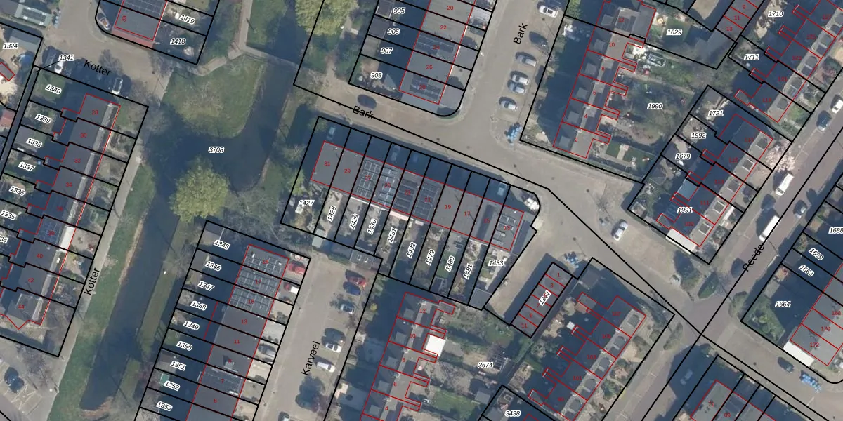 Het perceel waarop Bark 21 staat heeft een oppervlakte van 146 m². Dit is een middelgroot perceel. De perceeloppervlakte wordt geregistreerd door het Kadaster. Gedetailleerde informatie over de maten van dit perceel kunt u vinden in het rapport Kadastrale kaart met maatvoering van Bark 21.