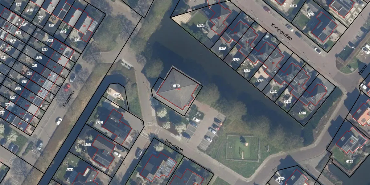 Het perceel waarop Bieningen 19 staat heeft een oppervlakte van 396 m². Dit is een groot perceel. De perceeloppervlakte wordt geregistreerd door het Kadaster. Gedetailleerde informatie over de maten van dit perceel kunt u vinden in het rapport Kadastrale kaart met maatvoering van Bieningen 19.