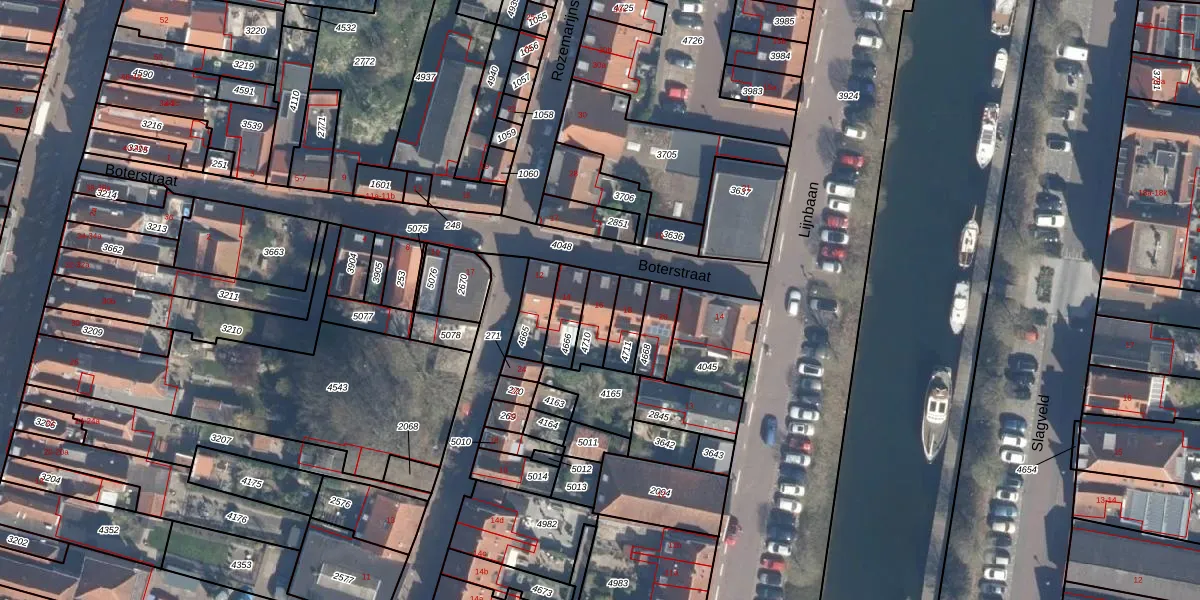 Boterstraat 16 is gelegen op kadastraal perceel BLE02B4710. Deze kadastrale aanduiding is uniek en wordt gebruikt door het Kadaster om eigendomsrechten en andere zakelijke rechten vast te leggen. Het perceel maakt onderdeel uit van de kadastrale gemeente Brielle.