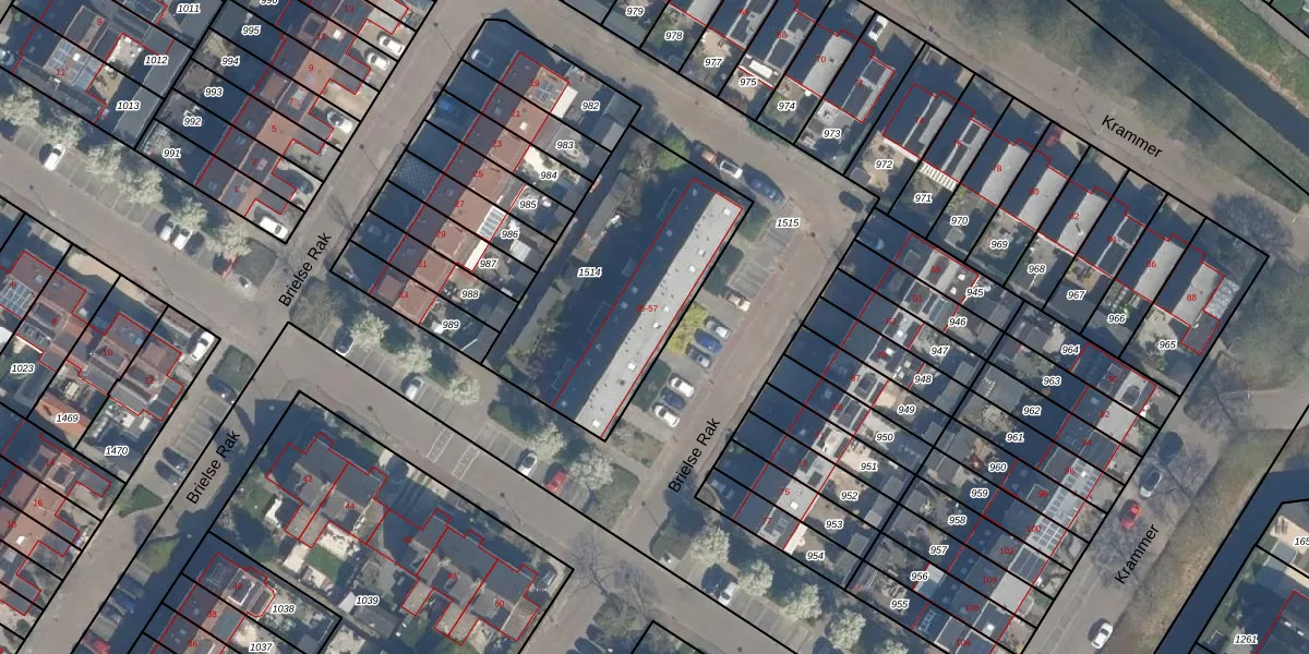 Brielse Rak 47 is gelegen op kadastraal perceel BLE02F1514. Deze kadastrale aanduiding is uniek en wordt gebruikt door het Kadaster om eigendomsrechten en andere zakelijke rechten vast te leggen. Het perceel maakt onderdeel uit van de kadastrale gemeente Brielle.