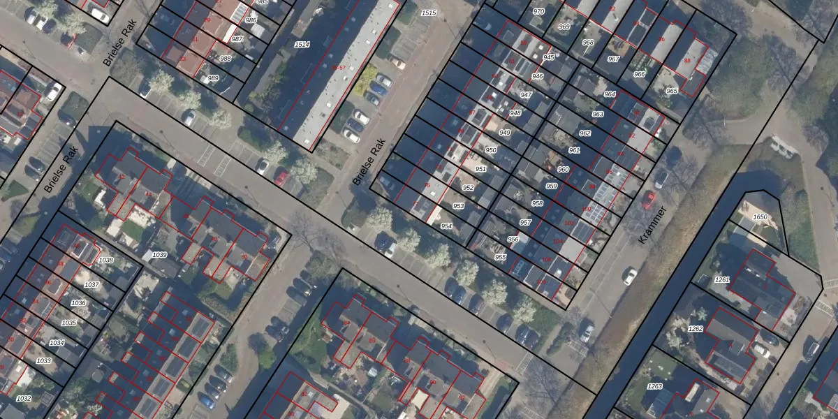 Brielse Rak 77 is gelegen op kadastraal perceel BLE02F954. Deze kadastrale aanduiding is uniek en wordt gebruikt door het Kadaster om eigendomsrechten en andere zakelijke rechten vast te leggen. Het perceel maakt onderdeel uit van de kadastrale gemeente Brielle.