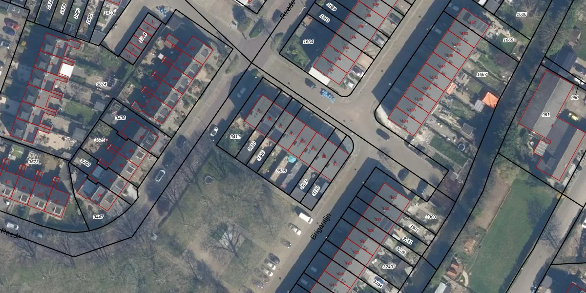 Het perceel waarop Brigantijn 63 staat heeft een oppervlakte van 384 m². Dit is een groot perceel. De perceeloppervlakte wordt geregistreerd door het Kadaster. Gedetailleerde informatie over de maten van dit perceel kunt u vinden in het rapport Kadastrale kaart met maatvoering van Brigantijn 63.