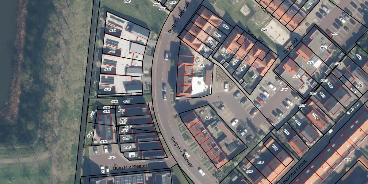 Burg H v Sleenstr 21 is gelegen op kadastraal perceel BLE02B4495. Deze kadastrale aanduiding is uniek en wordt gebruikt door het Kadaster om eigendomsrechten en andere zakelijke rechten vast te leggen. Het perceel maakt onderdeel uit van de kadastrale gemeente Brielle.