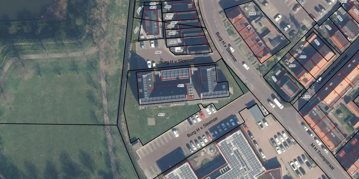 Burg H v Sleenstr 90 is gelegen op kadastraal perceel BLE02B4872. Deze kadastrale aanduiding is uniek en wordt gebruikt door het Kadaster om eigendomsrechten en andere zakelijke rechten vast te leggen. Het perceel maakt onderdeel uit van de kadastrale gemeente Brielle.