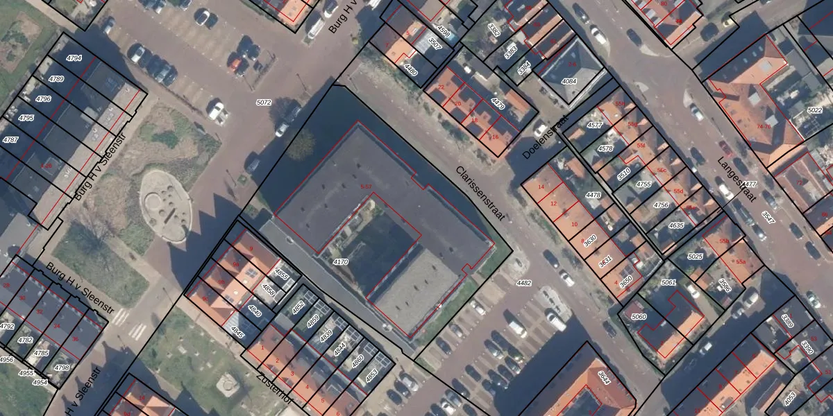 Clarissenstraat 43 is gelegen op kadastraal perceel BLE02B4170. Deze kadastrale aanduiding is uniek en wordt gebruikt door het Kadaster om eigendomsrechten en andere zakelijke rechten vast te leggen. Het perceel maakt onderdeel uit van de kadastrale gemeente Brielle.