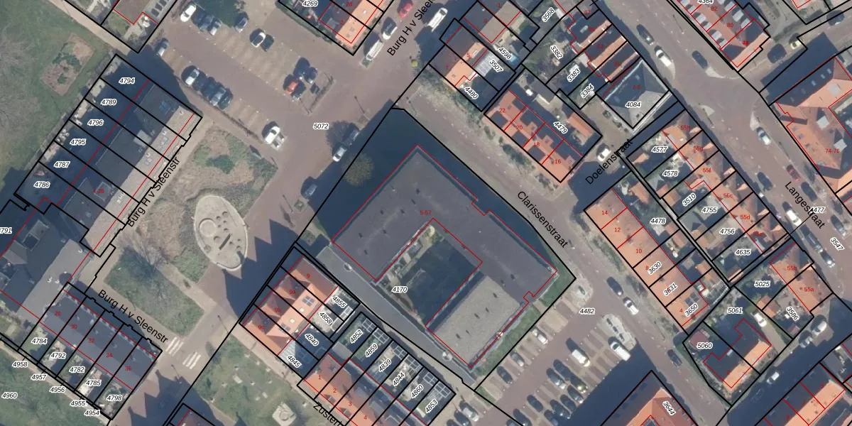Clarissenstraat 5 is gelegen op kadastraal perceel BLE02B4170. Deze kadastrale aanduiding is uniek en wordt gebruikt door het Kadaster om eigendomsrechten en andere zakelijke rechten vast te leggen. Het perceel maakt onderdeel uit van de kadastrale gemeente Brielle.
