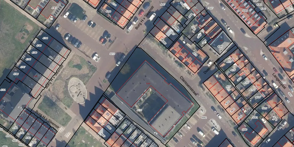 Clarissenstraat 57 is gelegen op kadastraal perceel BLE02B4170. Deze kadastrale aanduiding is uniek en wordt gebruikt door het Kadaster om eigendomsrechten en andere zakelijke rechten vast te leggen. Het perceel maakt onderdeel uit van de kadastrale gemeente Brielle.