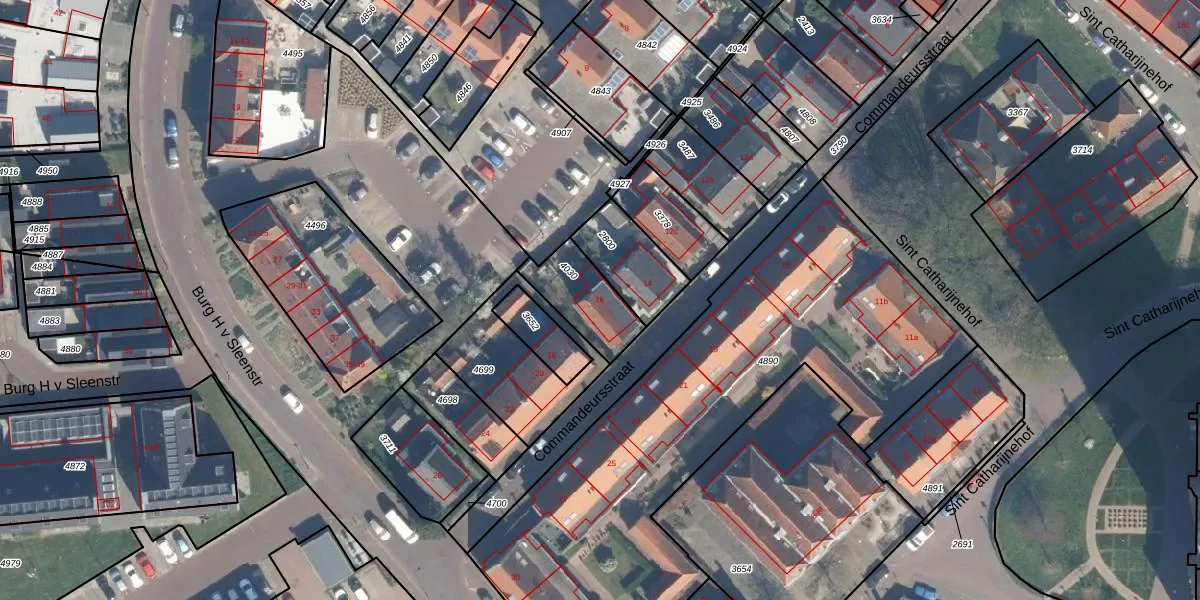 Commandeursstraat 16 is gelegen op kadastraal perceel BLE02B4030. Deze kadastrale aanduiding is uniek en wordt gebruikt door het Kadaster om eigendomsrechten en andere zakelijke rechten vast te leggen. Het perceel maakt onderdeel uit van de kadastrale gemeente Brielle.