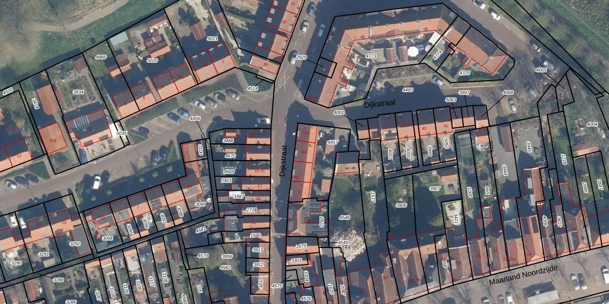 Dijkstraat 12 is gelegen op kadastraal perceel BLE02B4457. Deze kadastrale aanduiding is uniek en wordt gebruikt door het Kadaster om eigendomsrechten en andere zakelijke rechten vast te leggen. Het perceel maakt onderdeel uit van de kadastrale gemeente Brielle.