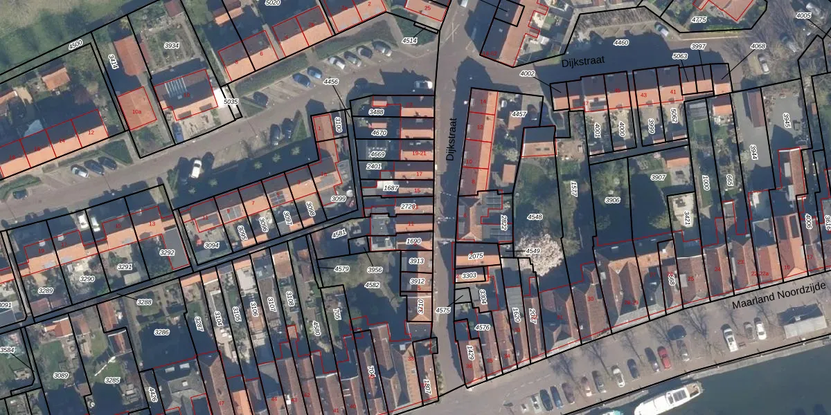 Het perceel waarop Dijkstraat 13 staat heeft een oppervlakte van 77 m². Dit is een klein perceel. De perceeloppervlakte wordt geregistreerd door het Kadaster. Gedetailleerde informatie over de maten van dit perceel kunt u vinden in het rapport Kadastrale kaart met maatvoering van Dijkstraat 13.