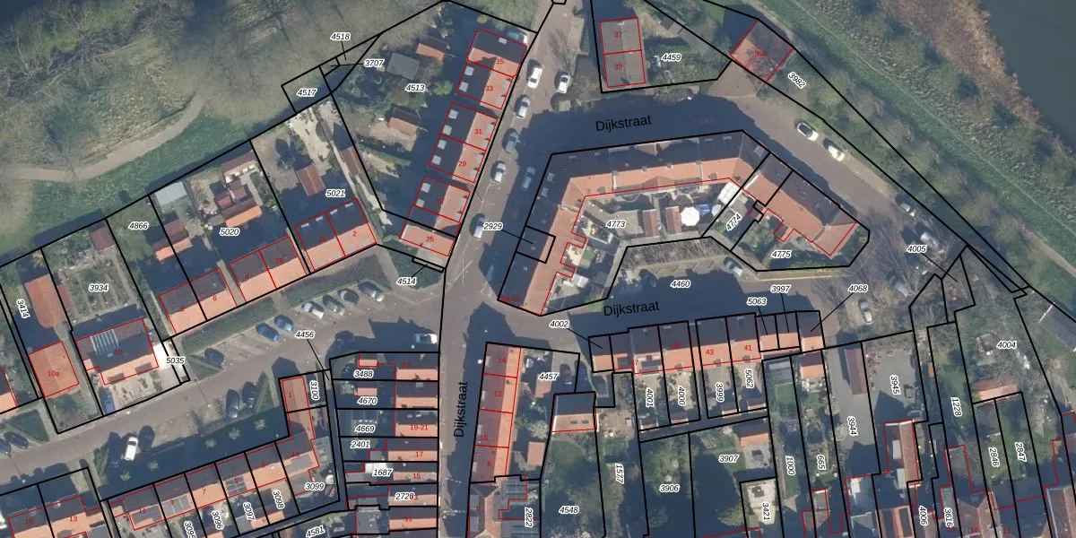 Het perceel waarop Dijkstraat 22 staat heeft een oppervlakte van 905 m². Dit is een groot perceel. De perceeloppervlakte wordt geregistreerd door het Kadaster. Gedetailleerde informatie over de maten van dit perceel kunt u vinden in het rapport Kadastrale kaart met maatvoering van Dijkstraat 22.