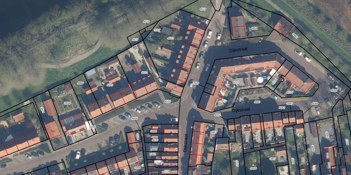 Het perceel waarop Dijkstraat 25 staat heeft een oppervlakte van 592 m². Dit is een groot perceel. De perceeloppervlakte wordt geregistreerd door het Kadaster. Gedetailleerde informatie over de maten van dit perceel kunt u vinden in het rapport Kadastrale kaart met maatvoering van Dijkstraat 25.