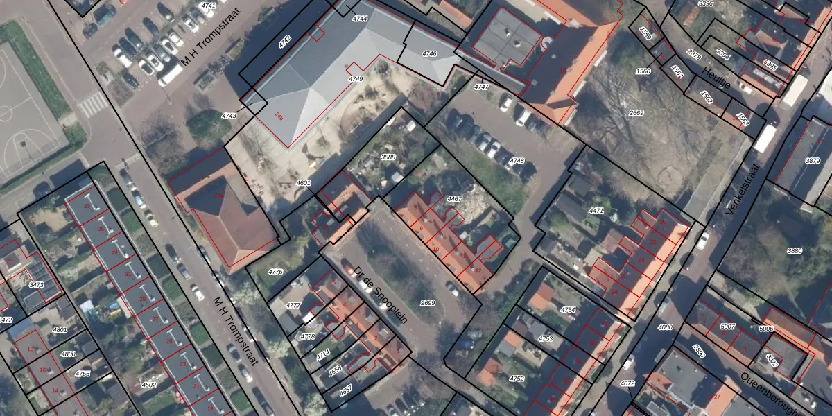 Het perceel waarop Dr de Snooplein 8 staat heeft een oppervlakte van 595 m². Dit is een groot perceel. De perceeloppervlakte wordt geregistreerd door het Kadaster. Gedetailleerde informatie over de maten van dit perceel kunt u vinden in het rapport Kadastrale kaart met maatvoering van Dr de Snooplein 8.
