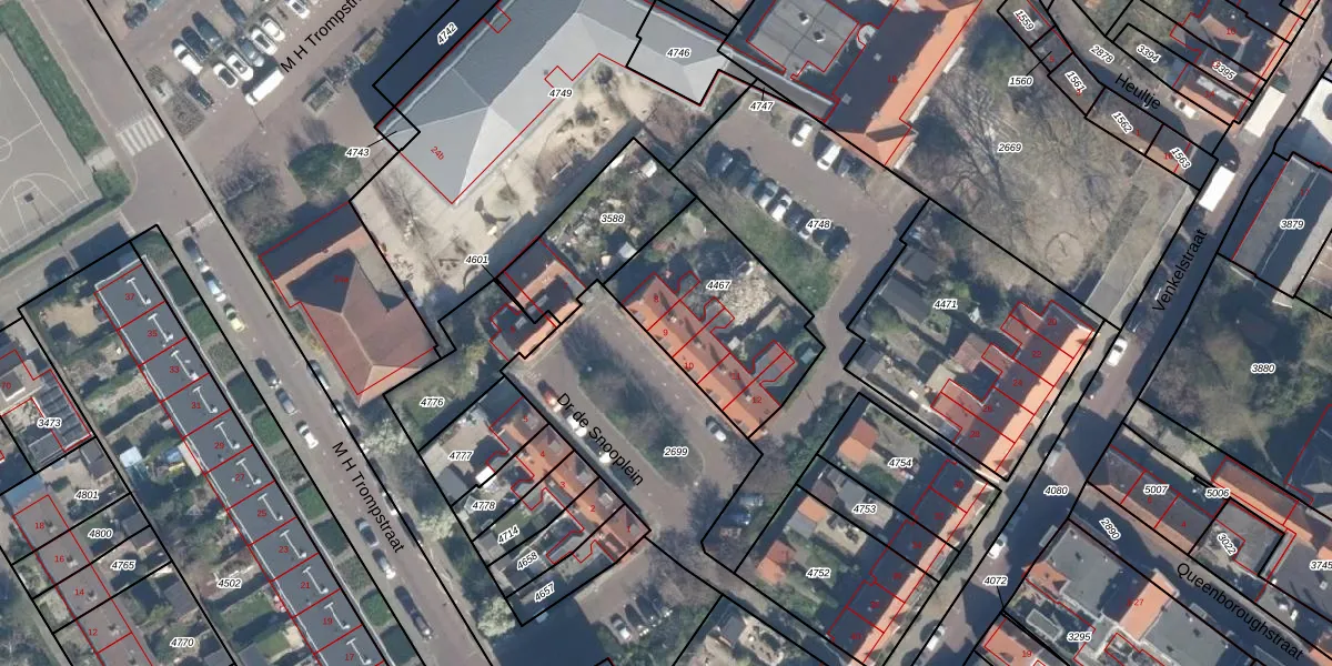 Dr de Snooplein 9 is gelegen op kadastraal perceel BLE02B4467. Deze kadastrale aanduiding is uniek en wordt gebruikt door het Kadaster om eigendomsrechten en andere zakelijke rechten vast te leggen. Het perceel maakt onderdeel uit van de kadastrale gemeente Brielle.
