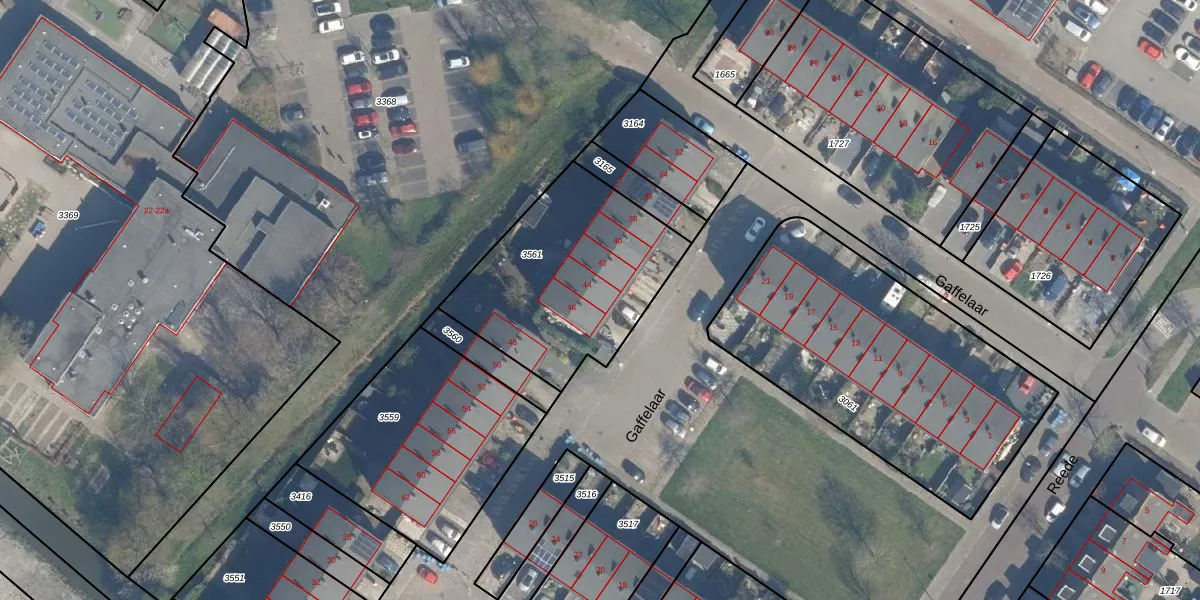 Het perceel waarop Gaffelaar 44 staat heeft een oppervlakte van 838 m². Dit is een groot perceel. De perceeloppervlakte wordt geregistreerd door het Kadaster. Gedetailleerde informatie over de maten van dit perceel kunt u vinden in het rapport Kadastrale kaart met maatvoering van Gaffelaar 44.
