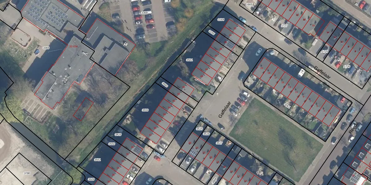 Gaffelaar 48 is gelegen op kadastraal perceel BLE02C3561. Deze kadastrale aanduiding is uniek en wordt gebruikt door het Kadaster om eigendomsrechten en andere zakelijke rechten vast te leggen. Het perceel maakt onderdeel uit van de kadastrale gemeente Brielle.