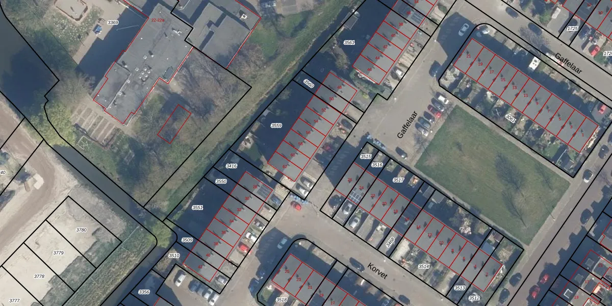 Het perceel waarop Gaffelaar 58 staat heeft een oppervlakte van 837 m². Dit is een groot perceel. De perceeloppervlakte wordt geregistreerd door het Kadaster. Gedetailleerde informatie over de maten van dit perceel kunt u vinden in het rapport Kadastrale kaart met maatvoering van Gaffelaar 58.