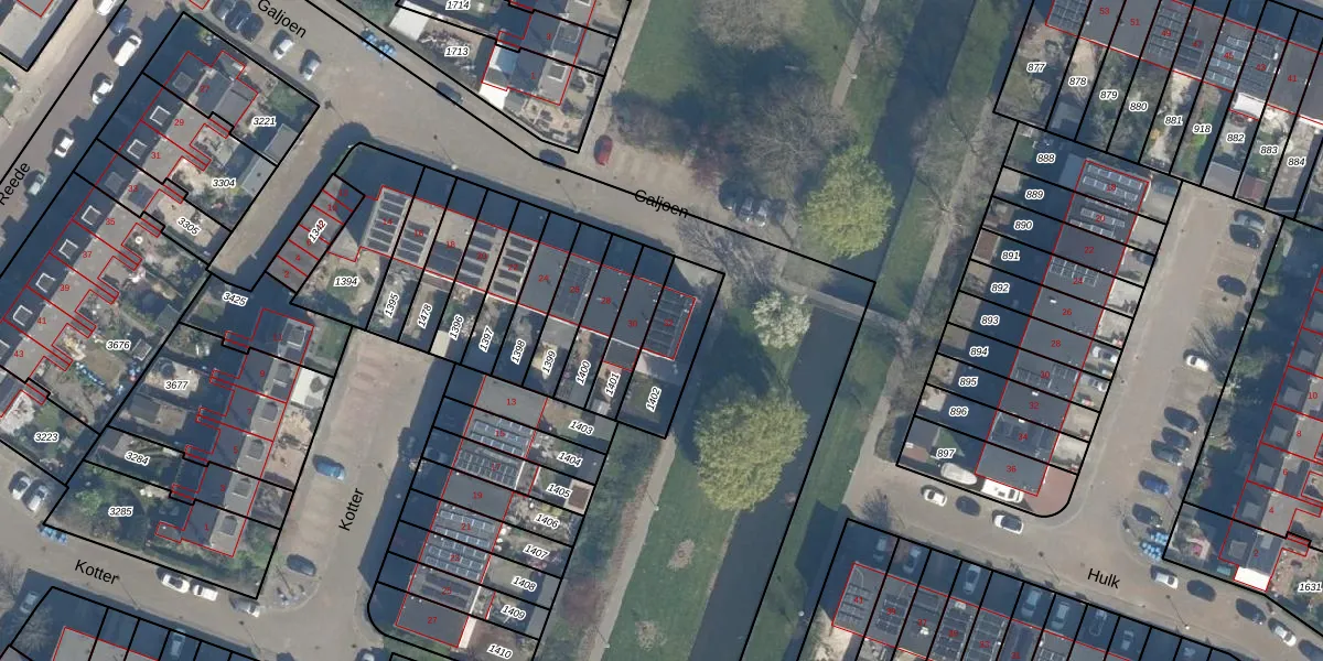 Het perceel waarop Galjoen 32 staat heeft een oppervlakte van 215 m². Dit is een middelgroot perceel. De perceeloppervlakte wordt geregistreerd door het Kadaster. Gedetailleerde informatie over de maten van dit perceel kunt u vinden in het rapport Kadastrale kaart met maatvoering van Galjoen 32.